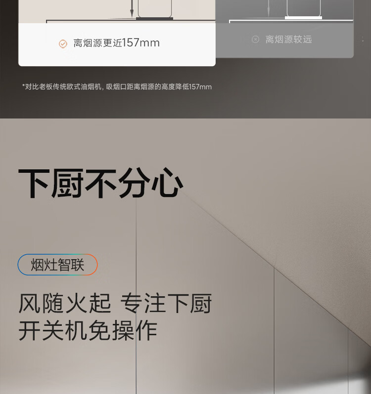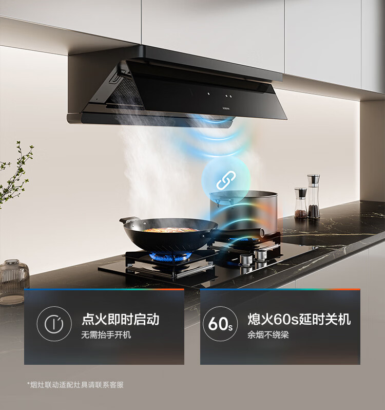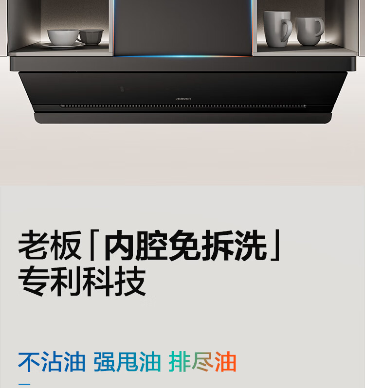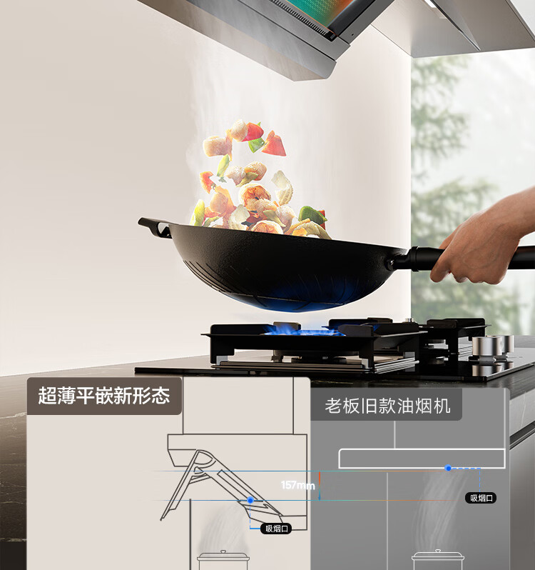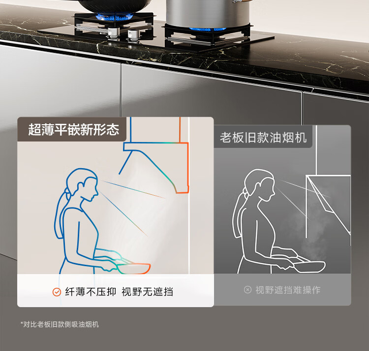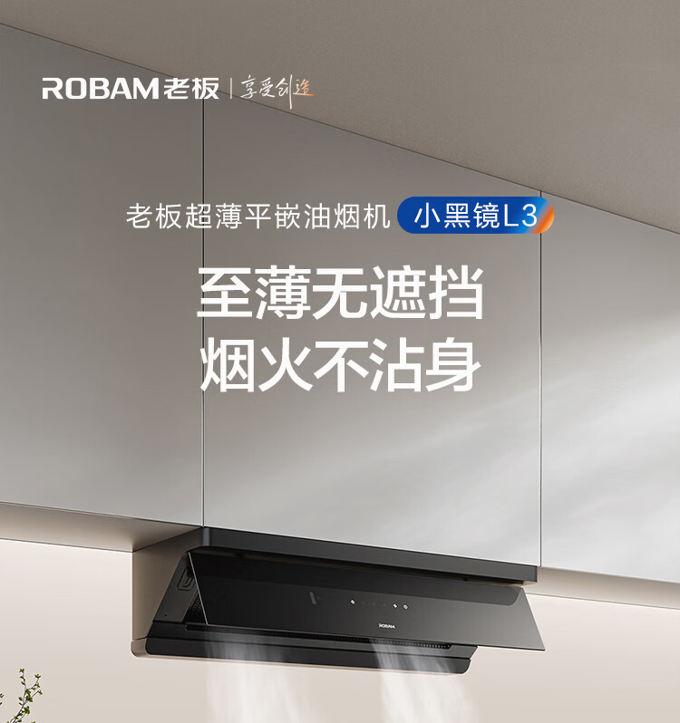 老板【烟灶联动小黑镜L3】抽吸排油烟机超薄平嵌静音顶侧一体家用27大吸力