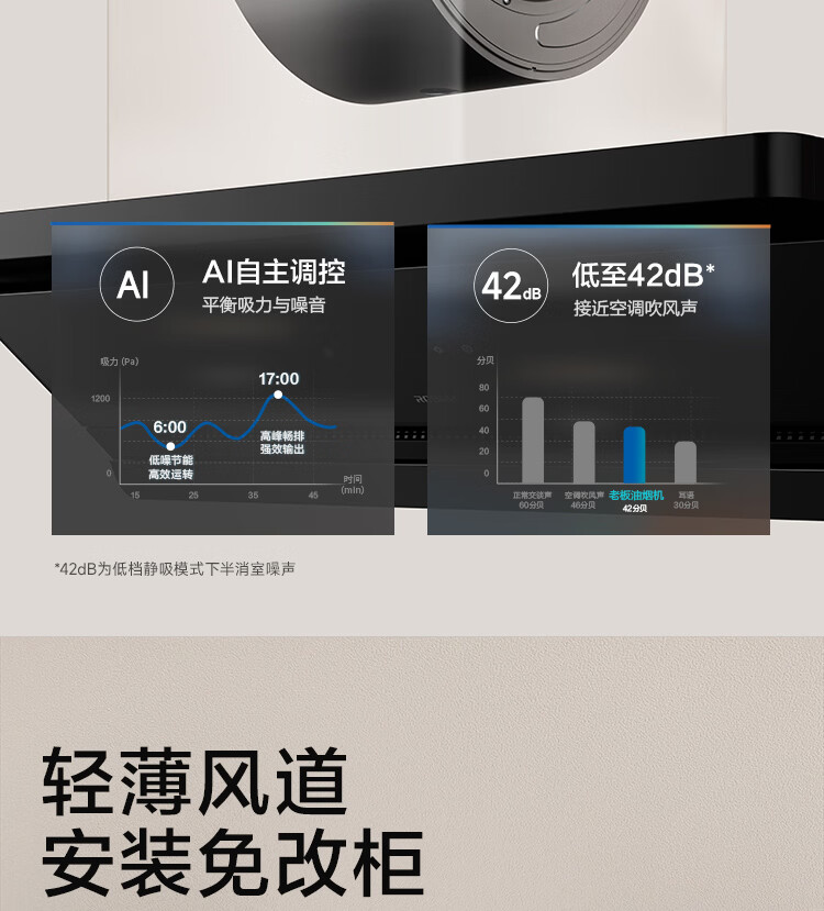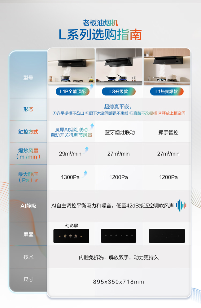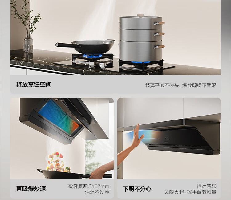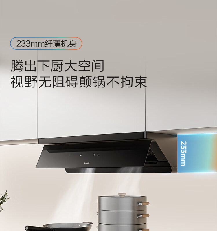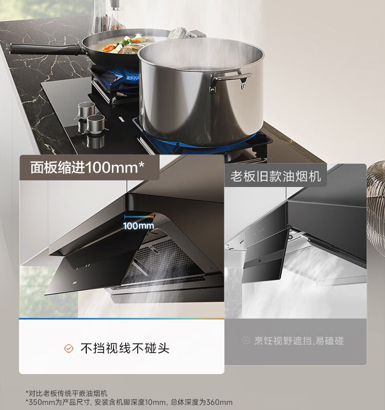 老板【烟灶联动小黑镜L3】抽吸排油烟机超薄平嵌静音顶侧一体家用27大吸力