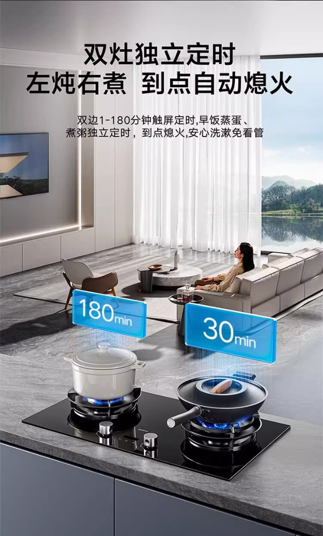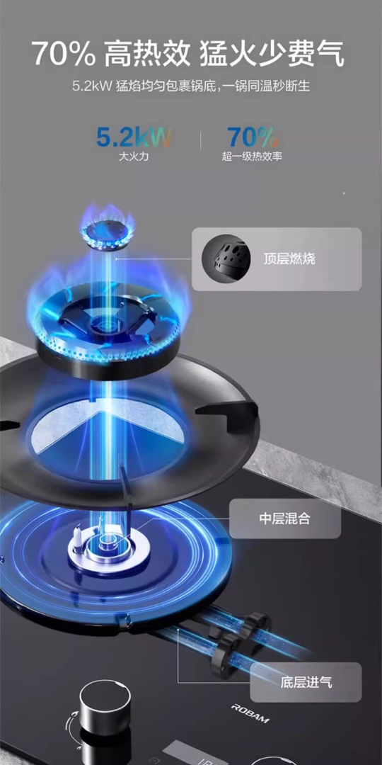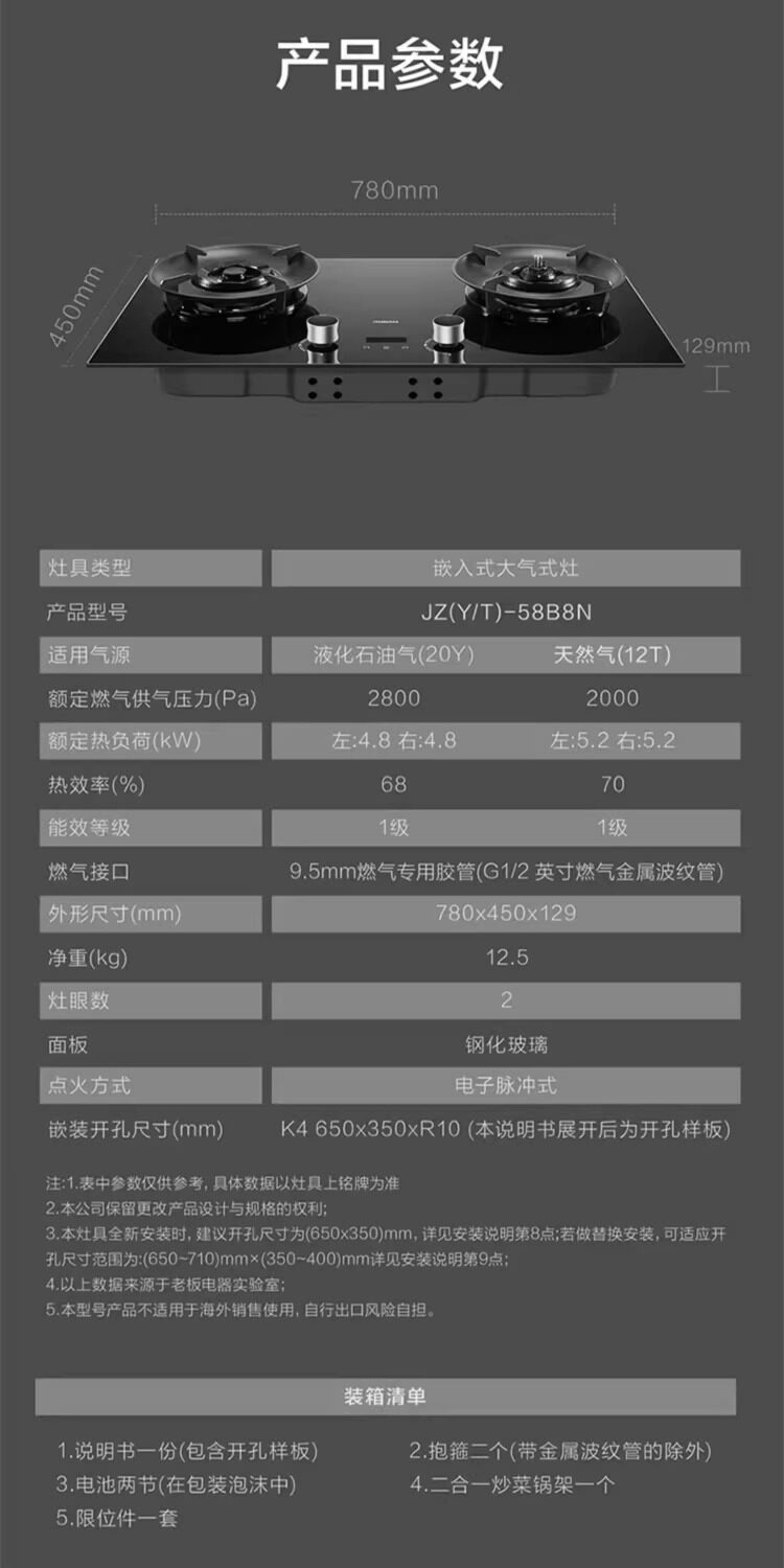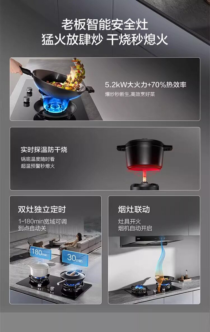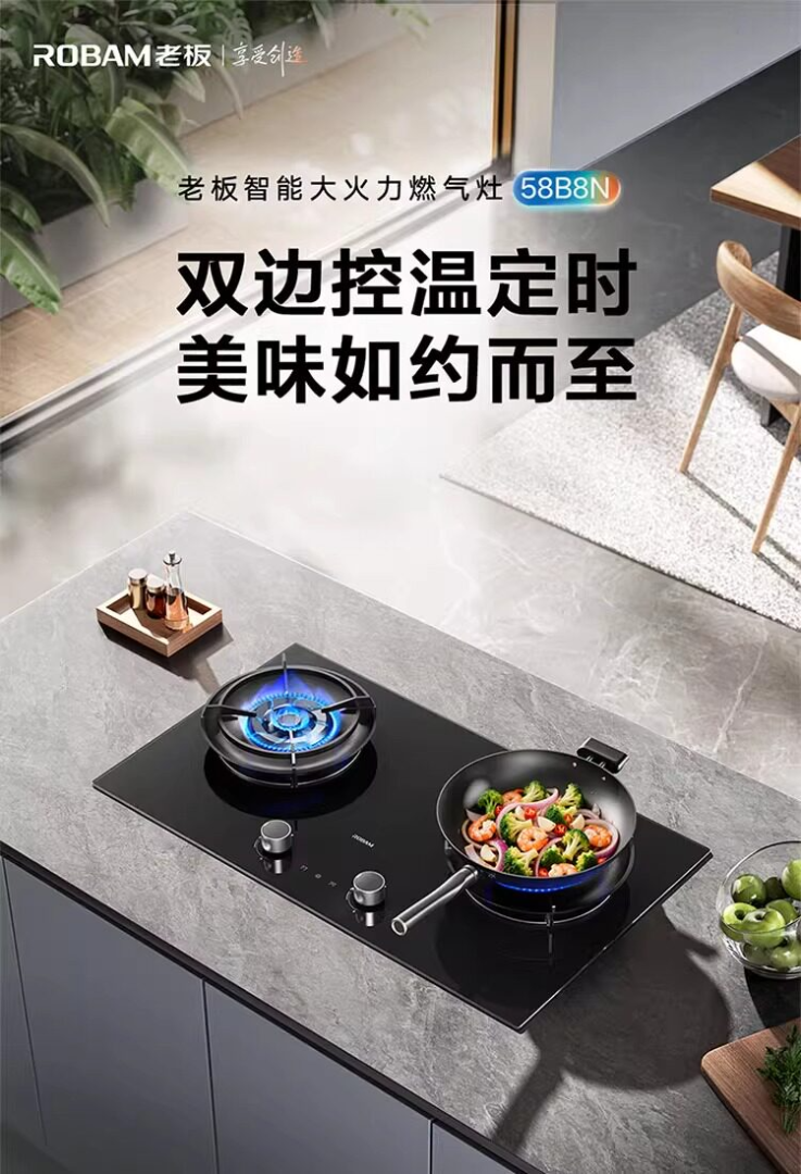 老板70%热效率+定时+烟灶联动5.2KW大火力灶天然气猛火燃气炉灶煤气双灶台灶具 58B8N【5.2kw烟灶联动大火力灶】