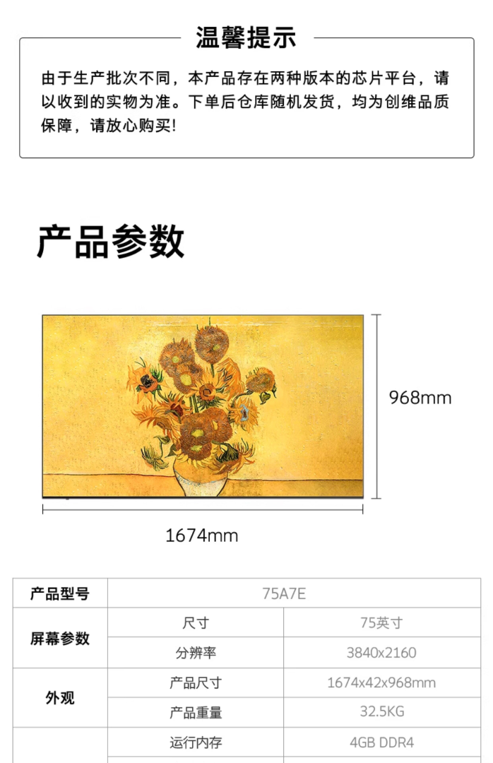 创维75A7E 75英寸 Mini LED 超薄壁纸智能AI电视机官方旗舰店
